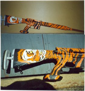But here’s the funny thing…I created art at the request of my clients needs.? I designed signs, murals, graphics, watercolors, calligraphy, logos, color schemes, store layouts, menus, interior and exterior design, you name it.? I even painted a rifle once for a rifle show!